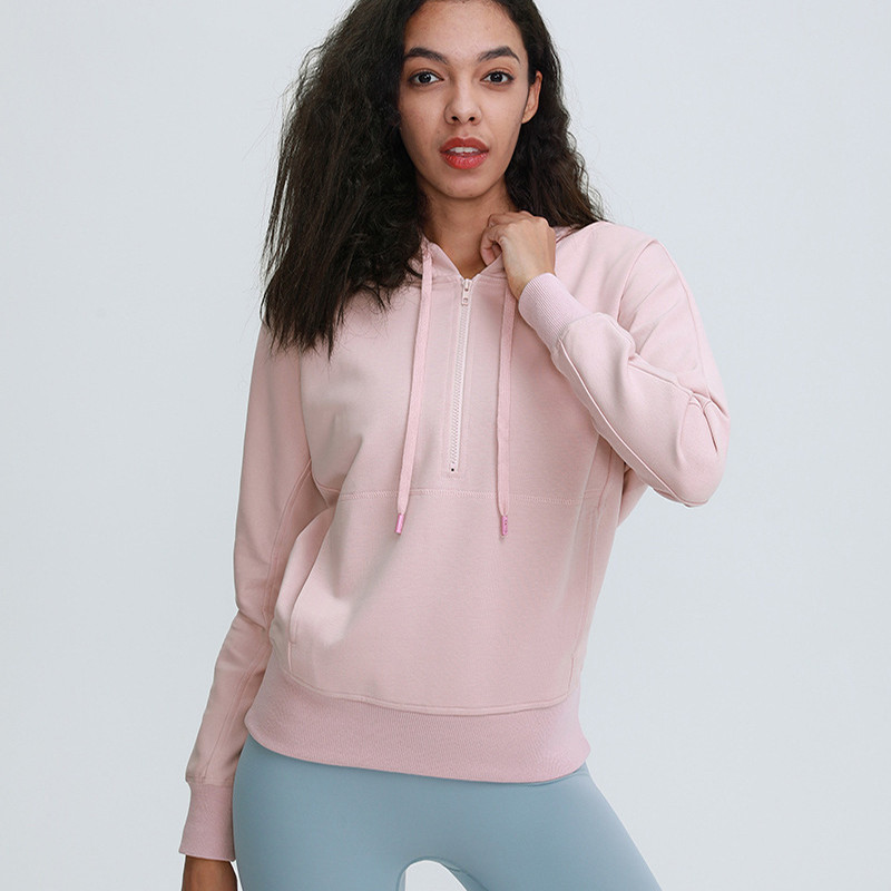 اسم | هودي رياضي فضفاض باللون الوردي مع سترة تدريب نسائية للجيب |