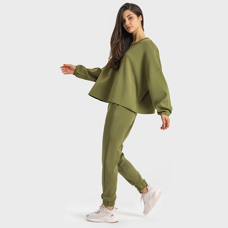 بلوزات نسائية شتوية خضراء بأكمام طويلة بالإضافة إلى قمصان رياضية يوجا بغطاء للرأس بأصفاد مرنة